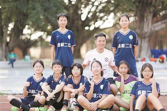 黎善舟是广州市南沙榄核第二中学(以下简称“榄核二中”)的一名体育教师,今年是他在这里的第21个年头。他以球为媒,借足球走进学生内心,给予学生学习和生活的关注,给他们带来自信和快乐。他带领的三支足球队从2015年参加南沙区足球比赛开始,9年来获得了22个冠军,2个亚军和1个季军的好成绩。