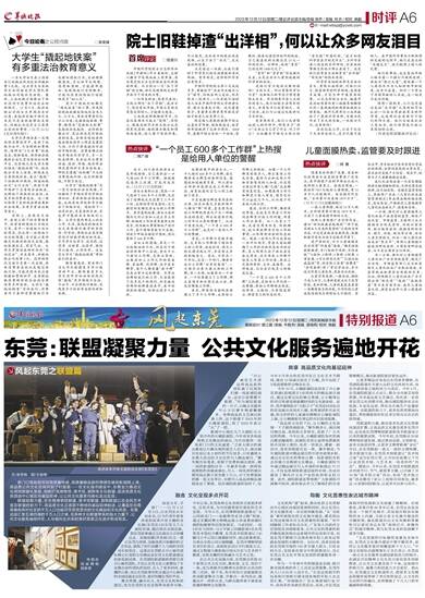 文化机构“盟”起来,推动优质文化资源由中心城区向基层延伸的同时,也让东莞公共文化服务进一步实现均衡发展。“从‘吴桂春’事件到现在的文化强市建设,都表现出东莞这座城市对文化普惠性的重视。”在中国晚报工作者协会会长、广东省人民政府文史馆馆员刘海陵看来,公共文化的普惠性和均衡发展表现出这座城市的包容和开放,也是东莞不断吸引全国各地年轻人前来这里就业发展的关键所在。2020年,读者吴桂春给东莞图书馆的130多字感人留言,引发全网关注,吴桂春在留言中的真情表白,也让东莞公共文化平等无差别的普惠服务进一步出圈。