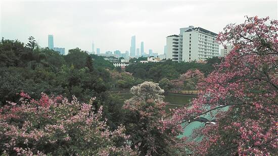 华师校园里花团锦簇,盛放的美丽异木棉灿烂夺目