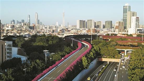 广州的各高架桥极具特色的城市空中花廊,就像一条条天上花街