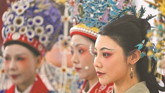 一场活动上,一群身着汉服的表演者