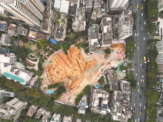 广州东风东路小学考古现场航拍图 羊城晚报记者 宋金峪 摄