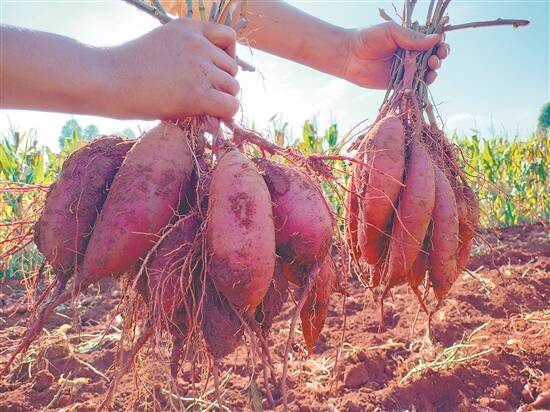 近年来,湛江依托得天独厚的光热条件,不断扩展甘薯“种植版图”,全市甘薯播种面积达90.9万亩,总产值超40亿元。目前,湛江已构建起薯业全链条、标准化、规模化、品牌化发展格局。湛江甘薯频频“出圈”,“土疙瘩”变身“金元宝”。