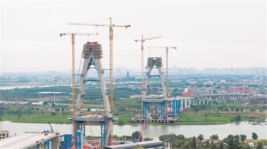 京灶大桥主桥南主塔于2022年9月13日正式开工建设,在施工过程中克服了深基坑作业桥梁施工组织难度大、主塔塔肢截面形式多变、斜拉索锚固区结构复杂等难点,历经460多个日夜后实现封顶。