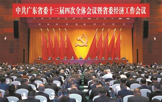 羊城晚报讯 12月29日,中国共产党广东省第十三届委员会第四次全体会议暨省委经济工作会议在广州召开。会议坚持以习近平新时代中国特色社会主义思想为指导,全面贯彻落实党的二十大、二十届二中全会和中央经济工作会议精神,深入学习贯彻习近平总书记视察广东重要讲话、重要指示精神,总结2023年工作,分析研判形势,部署2024年工作,奋力推动广东在推进中国式现代化建设中走在前列,为强国建设、民族复兴作出新的更大贡献。省委常委会主持会议。省委书记黄坤明代表省委常委会作报告,省委副书记、省长王伟中就经济工作作具体部署。