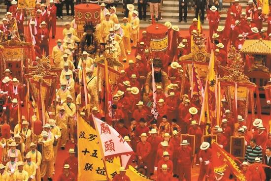 3月,第16届广州民俗文化节暨黄埔“波罗诞”千年庙会在南海神庙举行。时隔三年,盛况空前,3天接待游客近22万人次,其中,“正诞日”恰逢周末,是“波罗诞”最热闹的一天,客流量超14万人次。“五子朝王”仪式、“扶胥号”龙船朝王等活动,吸引了不少市民前往南海神庙打卡。(见图④)
