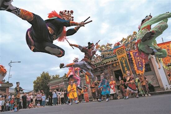 整个兔年春节假期,来自广东普宁的英歌舞视频、图片在各大社交平台霸屏。英歌成为社交平台当之无愧的“顶流”,即使是未经剪辑的英歌训练视频,都能拥有数十万播放量。甚至不少游客专程前往广东潮汕地区,亲身感受英歌的飒爽舞姿。英歌舞还“火”到海外,在泰国等东南亚国家扎根发芽。(见图①)