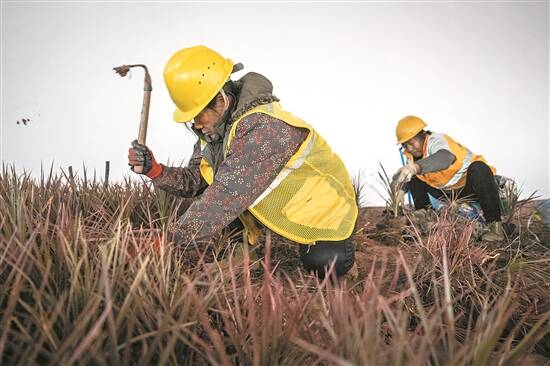 工人们在北广场种绿植