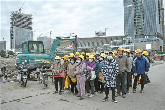 清晨,工人们等待交班