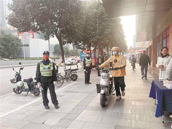 限行道路上,执勤人员摆放了通告牌,清晰明确地告知市民规定时间与路段内电动自行车禁止通行。对于超载、不戴头盔、牌照不全等违规行为,执勤人员表示将严格依规处理,确保道路安全与文明出行。