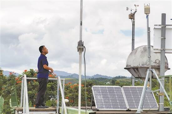 广东省气象台首席预报员杨国杰在观测天气 通讯员供图