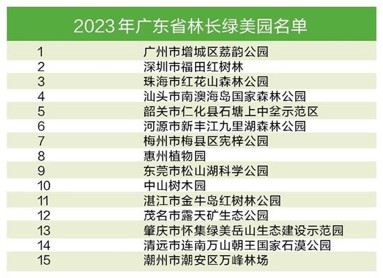 羊城晚报讯 记者张爱丽、通讯员林荫摄影报道:日前,2023年广东省林长绿美园名单公布,广州市增城区荔韵公园等15个单位榜上有名,全省林长绿美园数量增至26处。