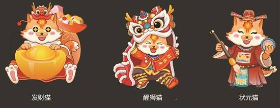 2024龙年新春将至,“慧食猫”带来了具有岭南本土风格的6位家族兄弟,分别是发财猫、醒狮猫、状元猫、粤剧猫、祈福猫、民乐猫。
