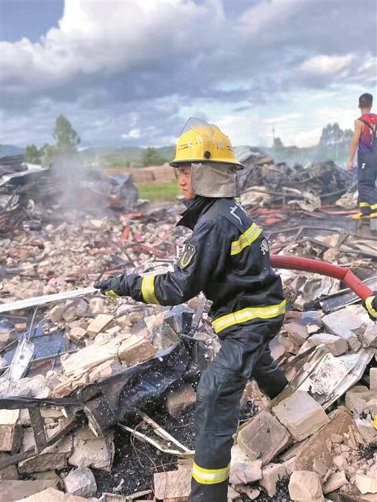原来是一家维修店里的电动车起火,火势迅速蔓延,不远处还有一家烟花爆竹仓库。大火就是一颗“定时炸弹”,若不及时扑灭,后果不堪设想。