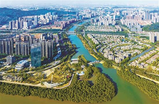 蕉门河中心区,已成为南沙的“城市客厅”,高标准的中央商务区和滨海新城区在这里崛起。沿着河岸,穿行于蕉门河绿道,河畔林边的生态底色和蓬勃发展的城市建设在这里完美结合。原生态的生活底色将人们紧密相连,幸福的笑容将鸟语花香写进南沙时光。溯水而行,滨海风貌与岭南水乡交相辉映;寻古而来,黄阁麒麟舞、南沙特色水乡婚俗、咸水歌已入选非物质文化遗产名录。