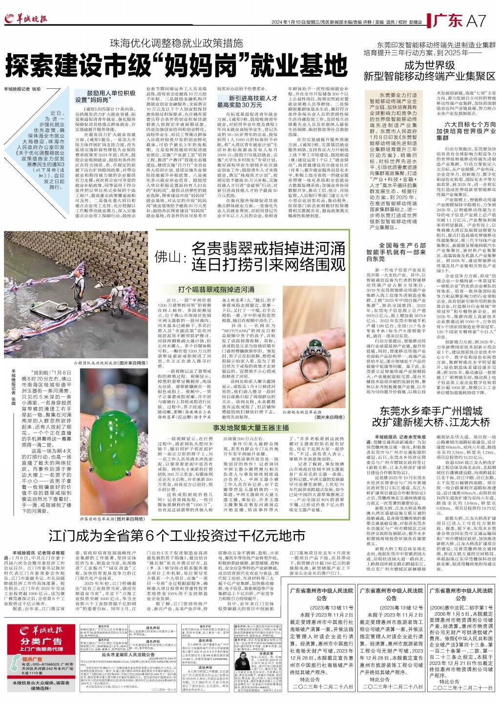 佛山:名贵翡翠戒指掉进河涌 连日打捞引来网络围观