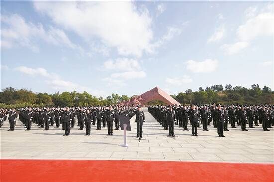 全省各地公安机关当天上午也同步组织开展了升警旗、唱警歌、重温人民警察誓词等活动。