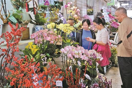 “今年的年花销售比以往提前了两周,年味渐浓,不少市民提前消费,购买年花。”岭南花卉市场经理何永表示,由于岭南花卉市场靠近地铁站,又有公交接驳,在工作日时间,有不少老年群体来到岭南花卉市场了解年花产品,选购心水年花。