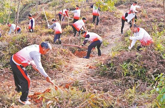 羊城晚报讯 记者吴奕镇,通讯员陈殷、王亚娇摄影报道:1月9日下午,在河源市东源县义合绿美生态建设综合型示范点,一场“全民绿化 河力备耕”冬季造林备耕活动正式启动。仅一天时间,市县镇村四级约3.37万人参与这场绿美行动,打穴约25.41万个,累计备耕面积5322亩。