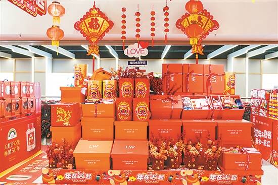 羊城晚报讯 记者范彬彬报道:距离春节仅有不到两个月的时间,近日,东莞市的各大商超的年货集市陆续启幕。“端盒式”礼品、定制版年货以及各种线上平台的消费券,为今年回家过年探亲的消费者们提供了丰富的年货选择。