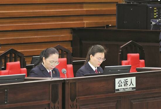 在法庭上履职的黄洁梅(右)