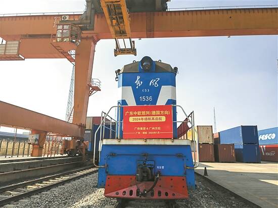 羊城晚报讯 记者严艺文、通讯员广交投摄影报道:1月16日,一列满载五金机械、日用电器等货物的中欧班列在广州增城西站编组完毕,在轰鸣的汽笛声中驶向德国汉堡。此趟班列货值约500万美元,货重355吨。时隔两年,广东中欧班列(德国方向)2024年扬帆再启航。