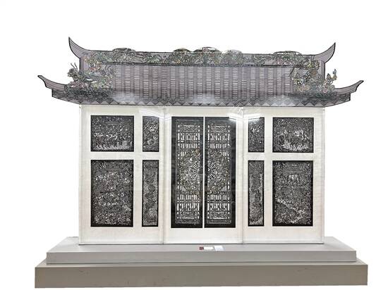 “在创作《潮风百韵·一剪千华》时,我们尝试突破单一的剪纸技法,将作品的重心放在诠释潮州文化方面,凸显潮州文化的三个核心点:崇文重教、忠孝友亲和追求精致。”曾万春告诉羊城晚报记者,团队还把潮州木雕、嵌瓷、石雕、潮剧、大吴泥塑等众多非遗元素融到剪纸创作中,并通过潮汕特色古建筑“门楼”作为载体,把传统剪纸的平面展示“立”了起来;此外,运用新的装置方式,增加了剪纸作品的通透性。
