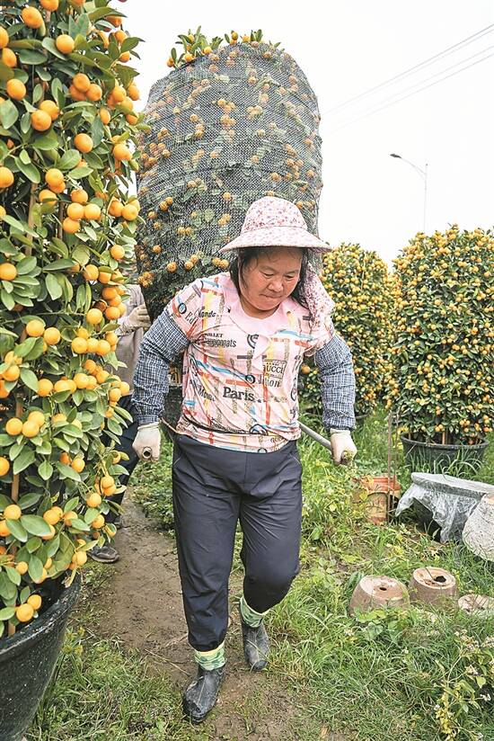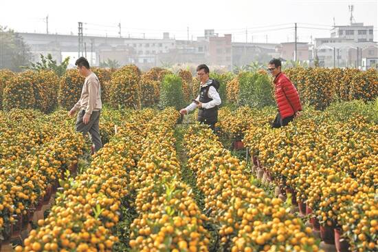 这时,密密麻麻的年桔树中走过两位顾客,她们有点小激动:“今年的树长得比去年要好,每棵树都很饱满,我听说这里的桔树很多都被人订了,今天早早就过来买,一口气买了6棵,觉得要比外面市面上便宜,想买的要抓紧了。”