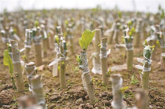 正在嫁接培育的朱砂桔树苗