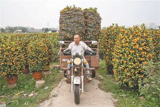 夕阳下,种植园的道路上,随处都见到农户们忙着给收获的年桔装车、发运。不久,这些寓意吉庆祥和的年桔将走进千万广州家庭,带去龙年的祝福。也祝愿这些年桔种植户顺风顺水、新年丰收。