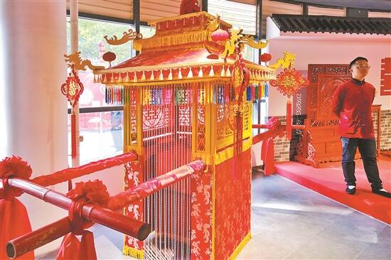 记者走访发现,荔湾区婚俗文化馆整体采用环绕式区域布局,展陈面积约300平方米,馆内全方位展示广府传统婚礼习俗这项非遗项目,设置了婚俗历史展览、还原古代实体场景、设置双喜打卡点等,向市民展示婚俗历史文化的变迁。