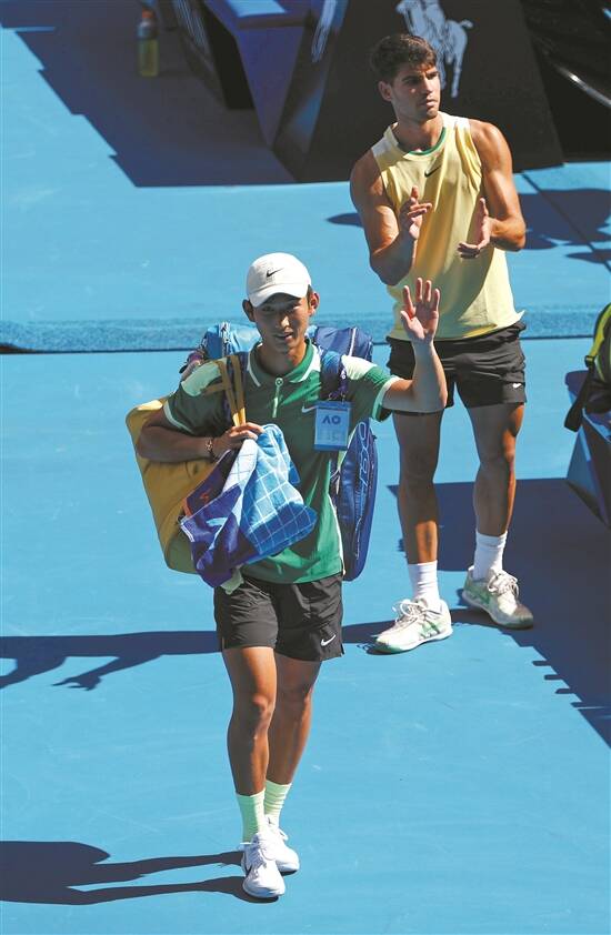 第二次出现在墨尔本公园球场,商竣程18岁了,凭借外卡入围男单正赛的他在首轮五盘大战中击败麦克唐纳德,也报了去年珠海输给对手的一箭之仇。第二轮战胜印度人纳加尔后,他得到了挑战阿尔卡拉斯的机会,尽管最后以退赛结束本届澳网之旅,但小将的上升速度大家有目共睹。