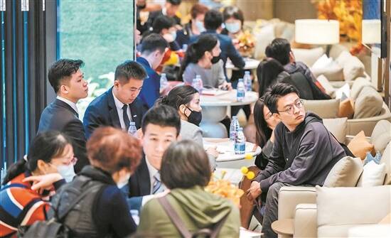 27日,政策出台后广州荔湾楼盘内看楼者众多