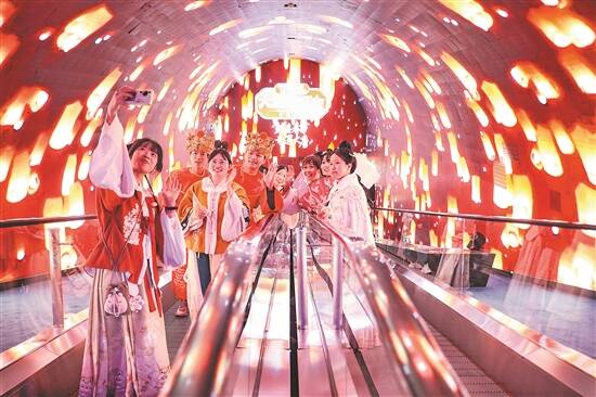 “正佳大唐千灯会·西遇长歌”即日起持续至3月15日,跨越春节、情人节、元宵节、妇女节四个重要节日。相较于去年的首届“正佳大唐千灯会”,今年的千灯会以“一带一路”为线索,以“盛唐丝路”为轴,融入十足的想象力和创造力,全场布置了上万盏花灯,复刻唐朝盛世街灯如昼的盛况,将重现“八方来朝、四海升平”的盛唐景象,打造一出大湾区最具创意和人气的新春主题盛典。市民游客不必前往西安,即可在家门口体验“做一日唐朝人,过一次盛唐年”的滋味。