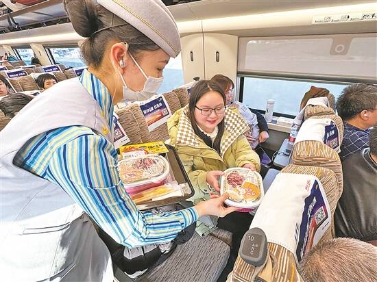 “今年春运高铁餐盒更大更重了。”不少旅客拿到餐食后如是说。潘可介绍,以15元的鱼香肉丝为例,和老款餐盒相比,新餐盒盒型从单格盒升级为大容量三格盒,餐食总重量增加70克,主荤从17克鸡肉升级为30克猪肉,并增加素菜30克,餐食口感和性价比均有显著提升。