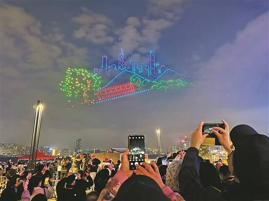 27日和28日晚在香港湾仔海滨举办的“缤纷香港”大型无人机灯光秀,旨在支持响应“日夜都缤纷”主题活动、迎接农历新年,是香港推介旅游的创新之举。
