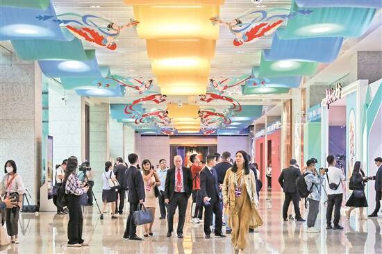 2023年9月6日,与会嘉宾在第六届丝绸之路(敦煌)国际文化博览会上参观 新华社发(资料图)