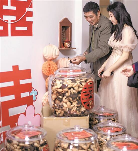 记者了解到,新会陈皮在过去数十年间曾遭受病害,产量锐减。这让陈皮当嫁妆的习俗一度沉寂。幸好近年来,新会陈皮发展动力强、势头足,热播电视剧《狂飙》里泰叔的一句“陈皮不错”让新会陈皮声名远播。到2022年年末,新会全区新会柑种植面积13.9万亩,年产新会柑皮8000吨。2023年新会陈皮全产业链营收超230亿元,蝉联“中国区域农业产业品牌影响力指数”榜首。在这波产业热潮带动下,以陈皮作嫁妆的习俗在陈皮产业从业者群体中再度兴起。不仅如此,以陈皮作嫁妆的习俗还传到了全国各地。近年来,在东莞、杭州等地,都有人用陈皮作嫁妆。每当一罐罐、一筐筐陈皮出现在迎亲队伍时,总会成为当地热闻。这也着实为新会陈皮打了“广告”。
