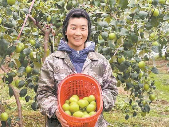 陈尚贵种植的牛奶蜜丝青枣果皮光滑、绿中带黄,果肉爽脆、清甜多汁,含丰富的果糖、纤维质和维生素C,深受客户的青睐,临近成熟期了,陈尚贵夫妻俩每天都要到园子里查看,把压弯的枝条用绳子拉起,望着满园硕果累累的景象,夫妻俩也露出了喜悦的笑容。陈尚贵说,再过一个星期,青枣口味达到最佳就可以上市了,零售价24元一公斤,主要是电商和开园采摘的销售模式,欢迎大家来园体验采摘的乐趣。