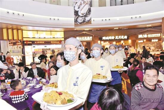 羊城晚报讯 记者王丹阳,通讯员粤交集宣、黄奥兴、霍雪龙摄影报道:大闸蟹、清蒸鲍鱼、美极基围虾………每桌16道菜,一共36桌酒席,300多位宾客欢聚一堂。不同的是,这场粤式家宴地点选择在春运时人流、车流俱旺的高速服务区。