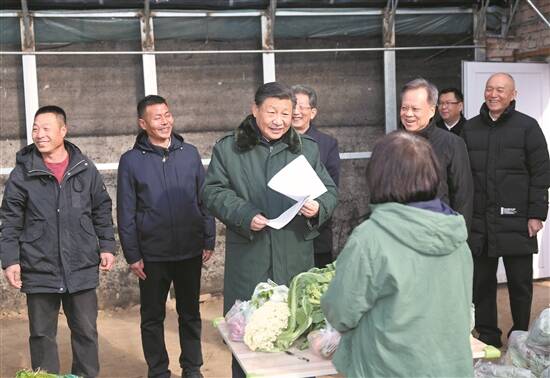 1日上午,习近平一下列车,就来到西青区辛口镇第六埠村。去年7月底8月初,华北地区极端降雨,引发海河流域性特大洪水,天津东淀蓄滞洪区大片土地被淹。习近平现场听取天津全市及西青区受灾情况介绍,走进大棚察看蔬菜长势,向菜农详细询问大棚修复和蔬菜补种、销售等情况。他对当地积极组织生产自救,抓紧时机“水退人进”、能种尽种的不等不靠主动精神表示肯定,感谢乡亲们辛勤劳动、为丰富都市“菜篮子”作出的贡献。