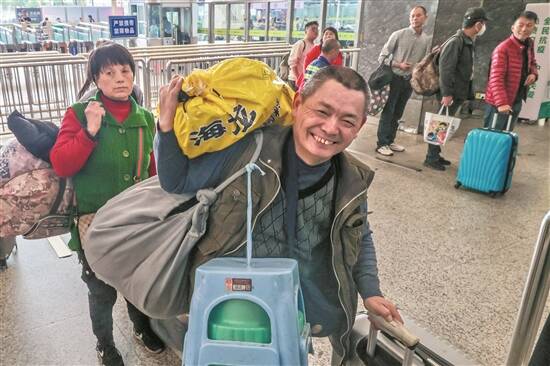 2月2日,广州白云站,准备上车回家了,如今候车厅里处处是这样的动人笑脸 羊城晚报记者 蔡嘉鸿 摄