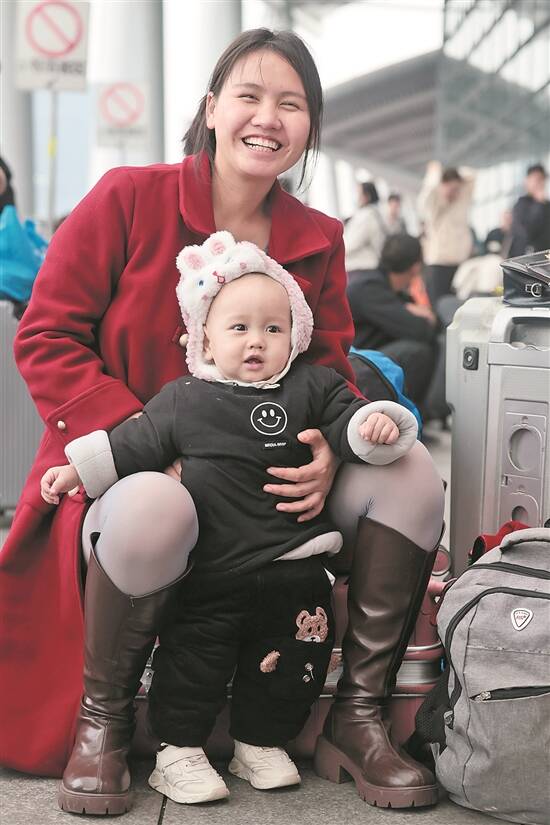 广州南站,一对幸福的母子 羊城晚报记者 刘畅 摄