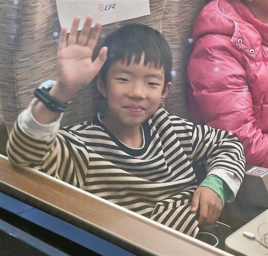 一位上车坐定的小朋友,正潇洒笑对镜头,还带着点小傲娇 羊城晚报记者 刘畅 摄