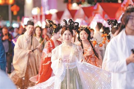 年轻人穿着汉服逛花街 羊城晚报记者 宋金峪 摄