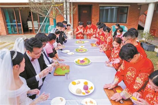当天,结婚小镇喜迎12对新人,他们共赴一场中西交融的唯美集体婚礼,现场气氛浪漫温馨。“结婚小镇为过去缺乏特色的一条村庄赋予了生动的IP,让它有了宣传的亮点。”小镇项目负责人许剑红告诉羊城晚报记者,围绕结婚小镇打造的“喜文化”中,婚庆作为链条最长的产业,将甜蜜爱情与乡村振兴的美好愿景完美结合,“新人来这边登记之后,还可以在此举办婚礼、度蜜月,住进我们的精品民宿,深度体验乡村田园生活。”