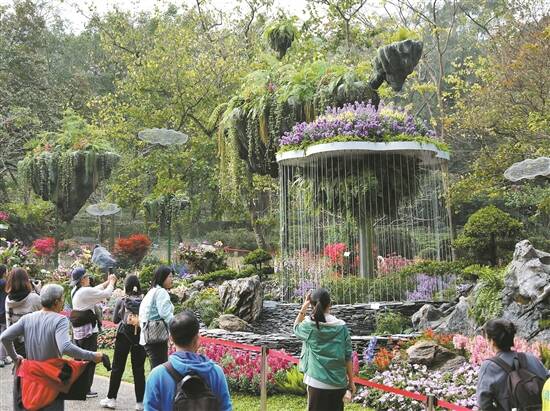 从展示云山珠水城市特点的《鸟屿浮岛》,到呈现岭南建筑风格线条的《丹凤朝阳》,再到将白云山地貌与浪漫岭南民俗神话结合的《鳌鱼跃花海》……11组精品园林、4组湾区城市花园、43组花境作品等近80座园林园艺作品,正与白云山的文化内涵、地理特征充分结合,展示着岭南园林的独特魅力。
