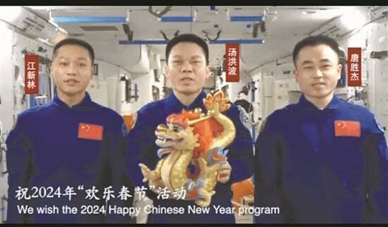 羊城晚报讯 记者文聪报道:2月3日晚,驻守在中国空间站的航天员手持“欢乐春节”吉祥龙送上了来自“天宫”的龙年新春祝福。这只“吉祥龙”由东莞市茶山镇的一家潮玩企业独家生产,这也是东莞潮玩首次升入太空。