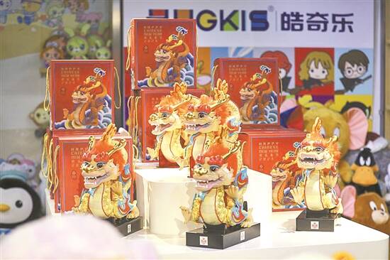 记者4日在皓奇乐看到,“吉祥龙”以红色和黄色作为主色调,在中国龙的典型艺术造型特征的基础上,融入了元宝、祥云纹、京剧脸谱等中华传统文化的代表性元素,彰显春节节日喜庆氛围,表达对平安喜乐、吉祥如意的美好期冀与追求。