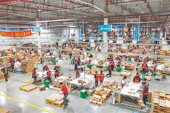 跨境电商打包现场 新华社发